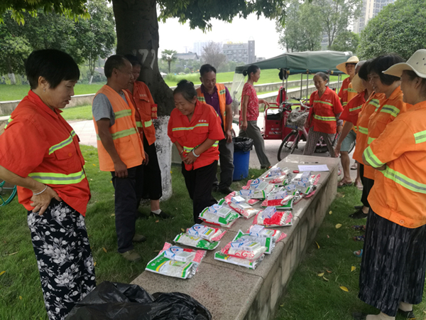 高溫季節(jié) 公司為一線員工發(fā)放防暑降溫物品
